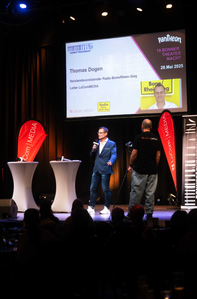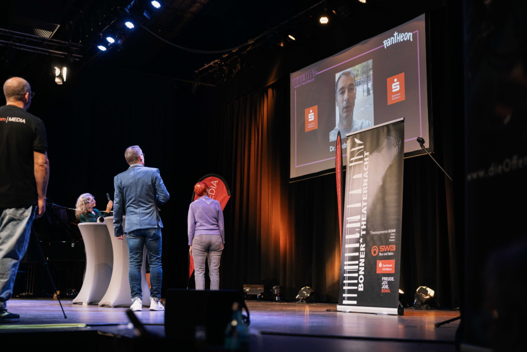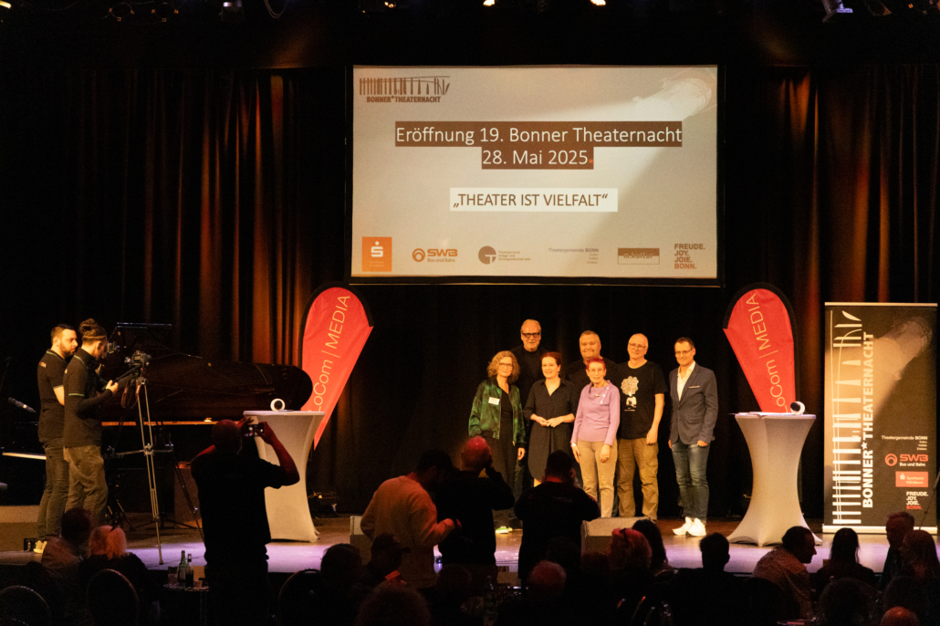 Am 28. Mai 2025 feierten die Bonner Bühnen und freie Theatergruppen die 19. Bonner Theaternacht. Der Startschuss fiel diesmal im Pantheon Theater, wo Thomas Dogen (Radio Bonn/Rhein-Sieg) die Eröffnung moderierte. Anwesend waren: Katja Dörner (Oberbürgermeisterin der Bundesstadt Bonn und Schirmherrin der 19. Bonner Theaternacht), Dr. Andreas Dartsch (stv. Vorsitzender des Vorstands der Sparkasse KölnBonn), Georg Bechthold (stv. Bereichsleiter Kommunikation und Marketing Stadtwerke Bonn GmbH), Elisabeth Einecke-Klövekorn (Vorsitzende Theatergemeinde BONN), Harald Kirsch (Pressesprecher Pantheon Theater) und Magdalena Bahr (m.kultur und Projektleiterin der Bonner Theaternacht)
